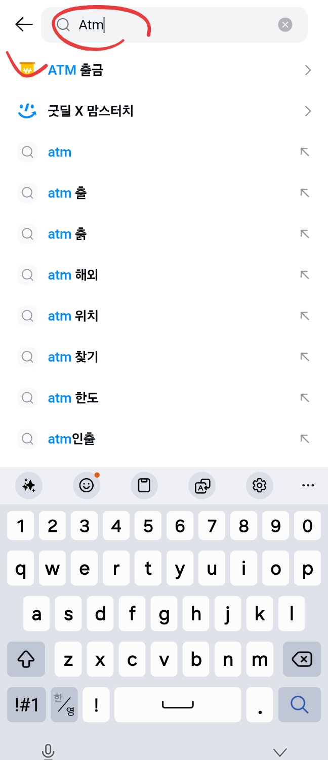 검색창에 ATM 입력하면 바로 ATM 출금 메뉴가 나옵니다.