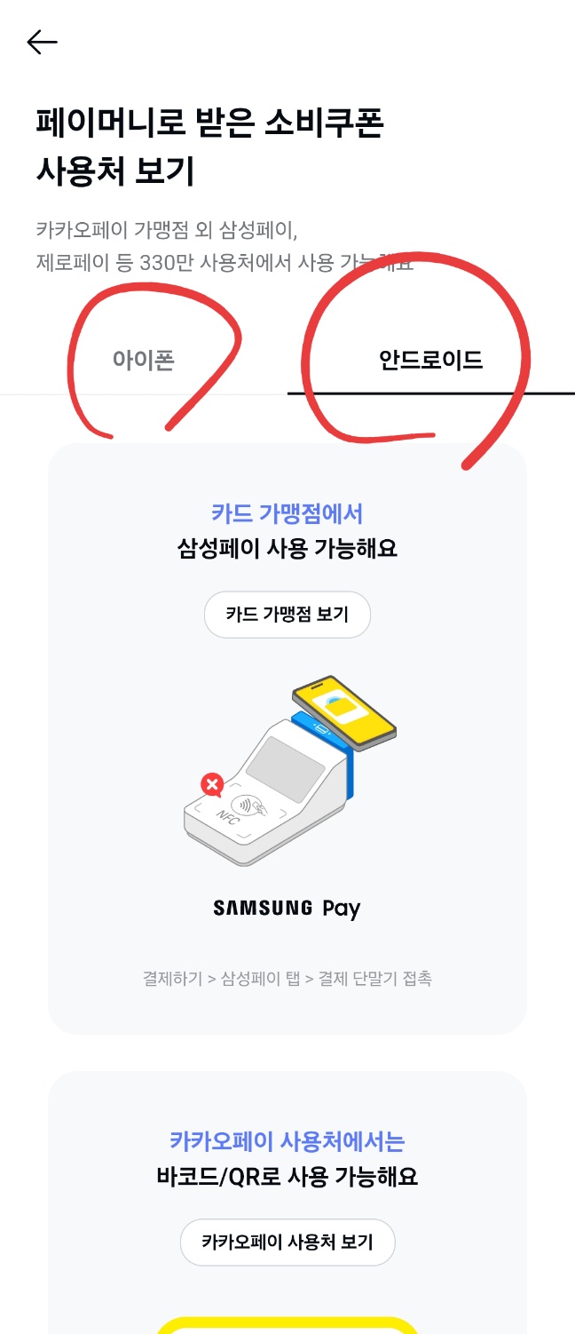 그런데 문제는 "카카오페이로 신청한 민생소비쿠폰" 사용처가 너무 적다는 거였습니다.