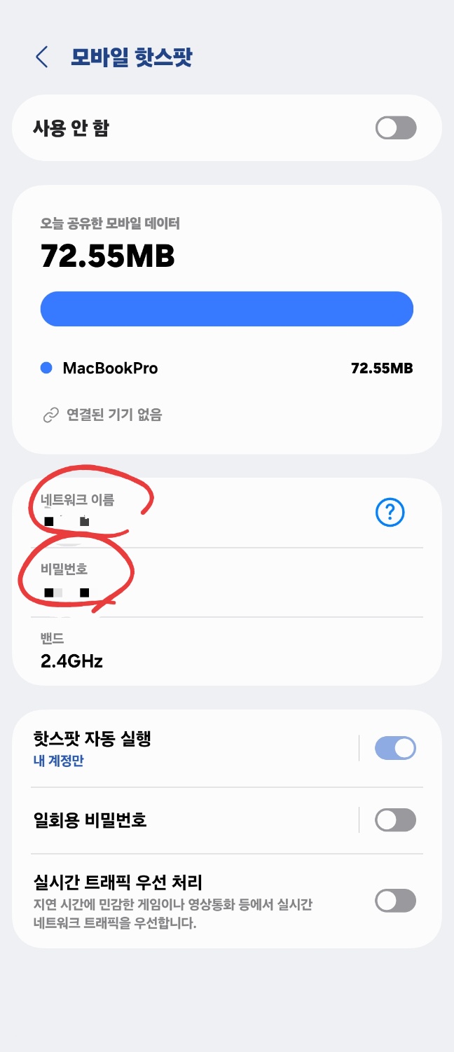 핫스팟을 켠 상태에서, 오늘 얼마나 데이터를 공유했는지도 화면에서 바로 확인할 수 있습니다.