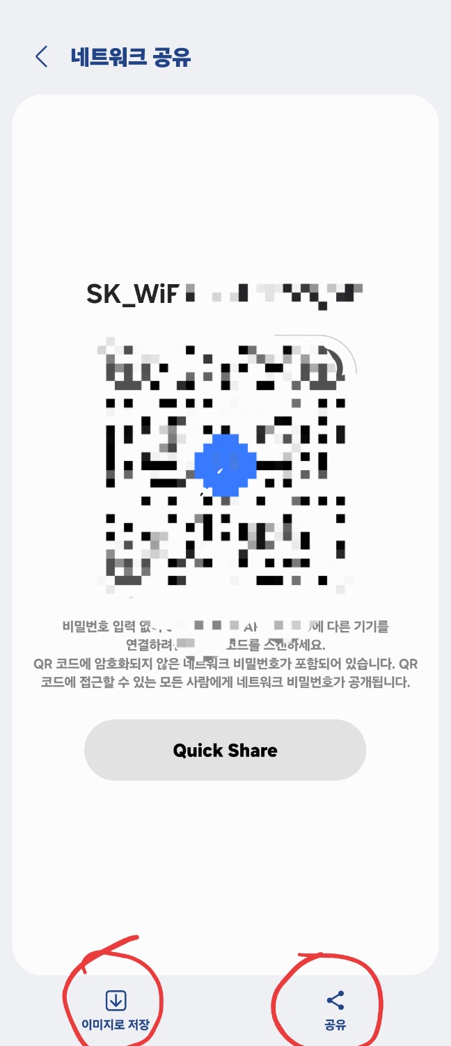 • 이 QR코드를 다른 사람이 휴대폰 카메라로 스캔하면, 자동으로 같은 와이파이에 연결됩니다.