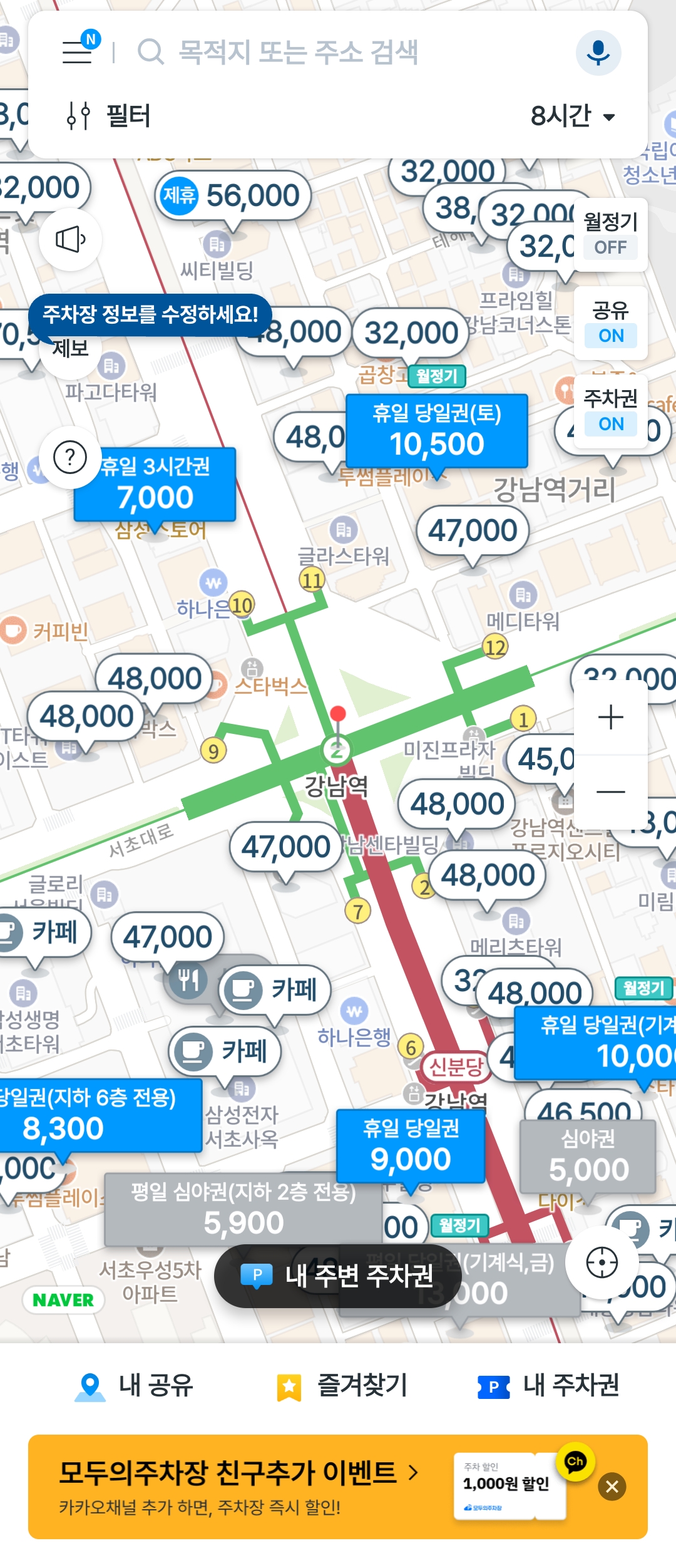 하지만 **모두의주차장(공유 주차장 포함)**과 카카오주차를 적절히 쓰면,